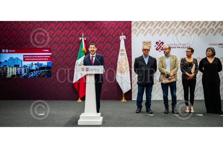 CIUDAD DE MÉXICO, 07SEPTIEMBRE2023.- Martí Batres Guadarrama, jefe del Gobierno de la Ciudad; hablo sobre los avances de la Ley de Publicidad Exterior y sobre el retiro de espectaculares de azotea en la Ciudad. Lo acompaña el secretario de Gobierno Ricardo Ruíz, así como otros miembros del gabinete. FOTO: GOBIERNO DE LA CIUDAD/CUARTOSCURO.COM