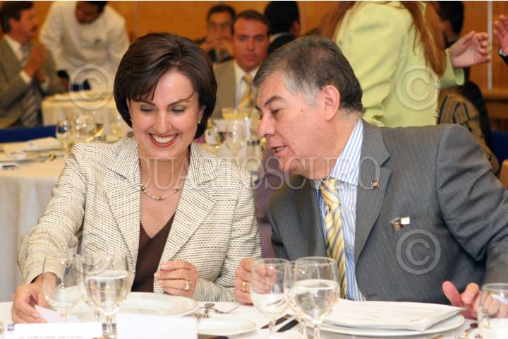 MÉXICO D.F. 02 MAYO 2006.- Patricia Mercado, candidata a la presidencia de la república por Alternativa Social Democrata, y Francioli Vázquez Rodríguez, Director General de ISA Corporativo, durante su reunión con integrantes del Club de Industriales como un acto de campaña para las proximas elecciones. FOTO: Guillermo Perea / CUARTOSCURO.COM