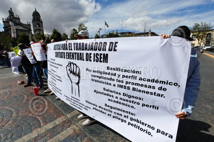 TOLUCA, ESTADO DE MÉXICO, 09ENERO2025.- Trabajadores del sector salud del ISEM se manifestaron frente a Palacio de Gobierno bloqueando la avenida Sebastián Lerdo de Tejada en Toluca, exigiendo reconocimientos sus necesidades laborales, basificacion, prestaciones de ley, continuidad de contratos, sueldos dignos, de no ser escuchados por las autoridades estatales continuarán con las manifestaciones. FOTO: CRISANTA ESPINOSA AGUILAR /CUARTOSCURO.COM