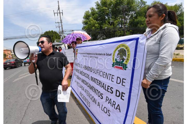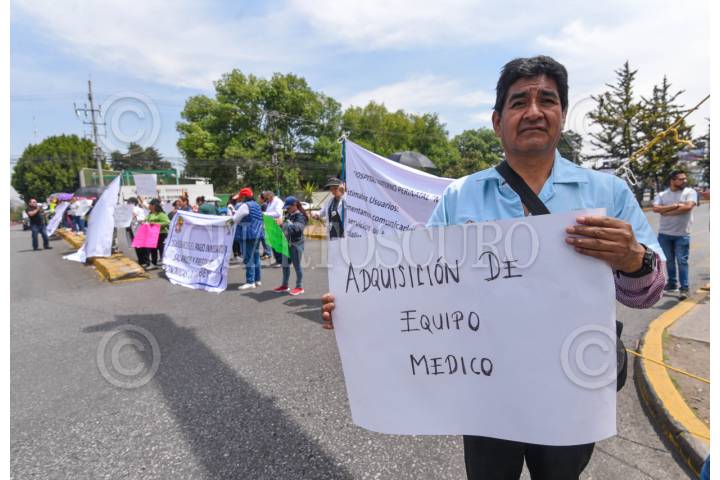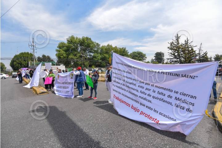 TOLUCA, ESTADO DE MÉXICO, 31MARZO2025.- Personal del IMSS Bienestar - Hospital Perinatal Monica Pretelini Sáenz se manifestaron durante la mañana de este lunes bloqueando Paseo Tollocan a unos metros del nosocomio, como parte delegación las protestas en otros hospitales de la capital mexiquense exigiendo mejoras salariales, mejoras en la infraestructura, abastecimiento de medicamentos, mobiliario, entre otras cosas. FOTO: CRISANTA ESPINOSA AGUILAR /CUARTOSCURO.COM