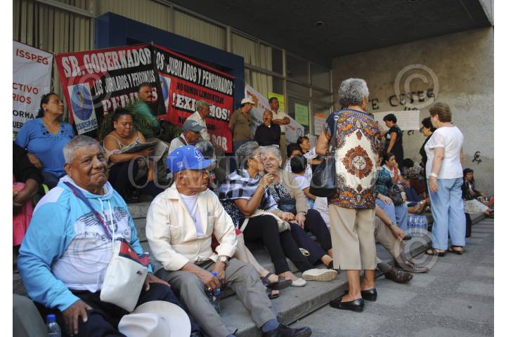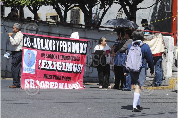 Miembros de las cinco asociaciones de jubilados y pensionados que en su vida laboral cotizaron al Issspeg, se manifestaron frente al palacio de gobierno municipal para exigir a la presidenta municipal Norma Otilia Hernández Martínez que pague más de 15 millones de pesos que adeuda de cuotas obrero patronales por los meses que tiene al frente de la administración.
