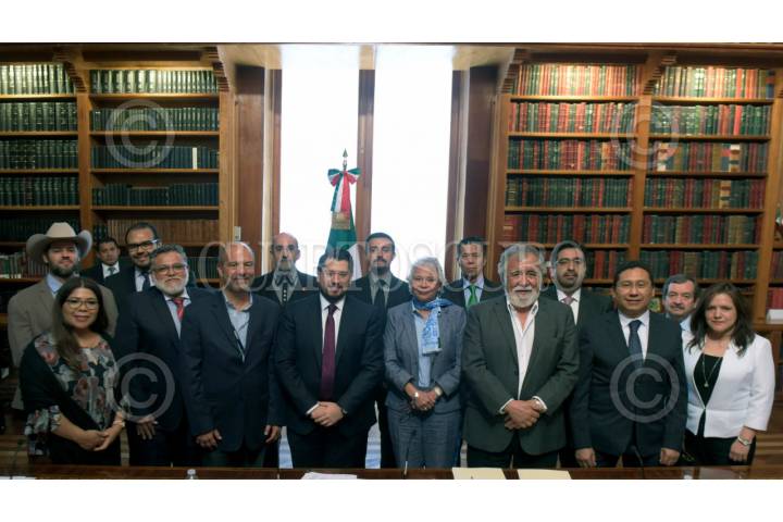 CIUDAD DE MÉXICO, 21MAYO2019.- La Secretaria de Gobernación, Olga Sánchez Cordero y el director general del INFONAVIT, Carlos Martínez Velázquez encabezaron la firma de convenio entre la Secretaria de Gobernación e Infonavit. La encargada de la política interior del país estuvo acompañada del Subsecretario de Derechos Humanos, Población y Migración, Alejandro Encinas Rodríguez, así como del titular de la Dirección General del Registro Nacional de Población e Identificación Personal (RENAPO), Jorge Wheatley Fernández. FOTO: CUARTOSCURO.COM