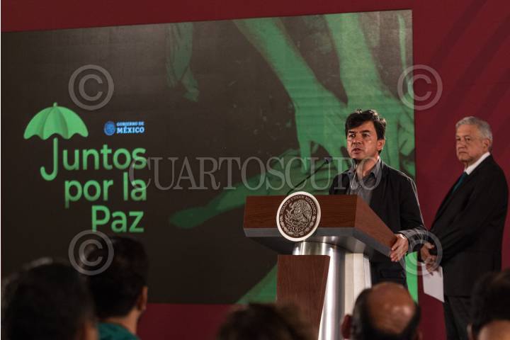 CIUDAD DE MÉXICO, 05JULIO2019.- El presidente de México, Andrés Manuel López Obrador y Ricardo Mejia Subsecretario de Seguridad Pública, durante la presentación del programa para jóvenes y niños de prevención de Salud y consumo de drogas en la conferencia matutina en el Palacio Nacional. FOTO: ANDREA MURCIA /CUARTOSCURO.COM