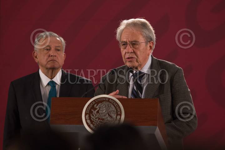 CIUDAD DE MÉXICO, 05JULIO2019.- El presidente de México, Andrés Manuel López Obrador y Jorge Alcocer Villanueva, secretario de Salud; durante la presentación del programa para jóvenes y niños de prevención de Salud y consumo de drogas en la conferencia matutina en el Palacio Nacional. FOTO: ANDREA MURCIA /CUARTOSCURO.COM