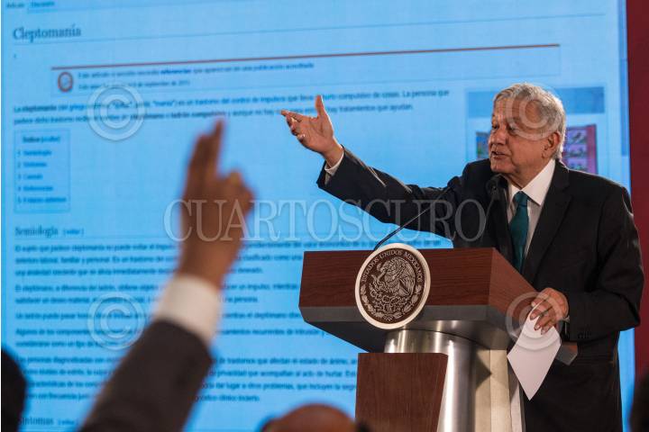 Andrés Manuel López Obrador, presidente de México, durante la conferencia matutina en el Palacio Nacional. FOTO: ANDREA MURCIA /CUARTOSCURO.COM