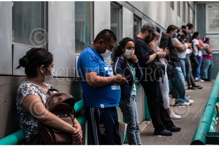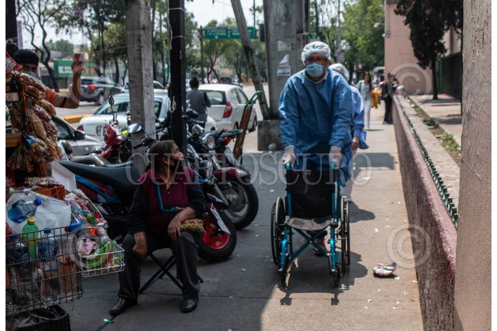 Personas tratan de tomar las medidas preventivas para no contagiarse del virus COVID-19, ya que tienen que seguir saliendo para monitorear y cuidar a su familiares en el Hospital La Raza