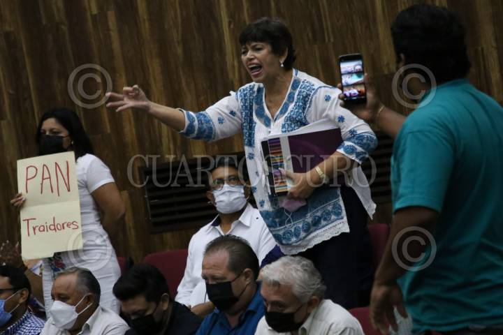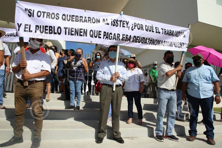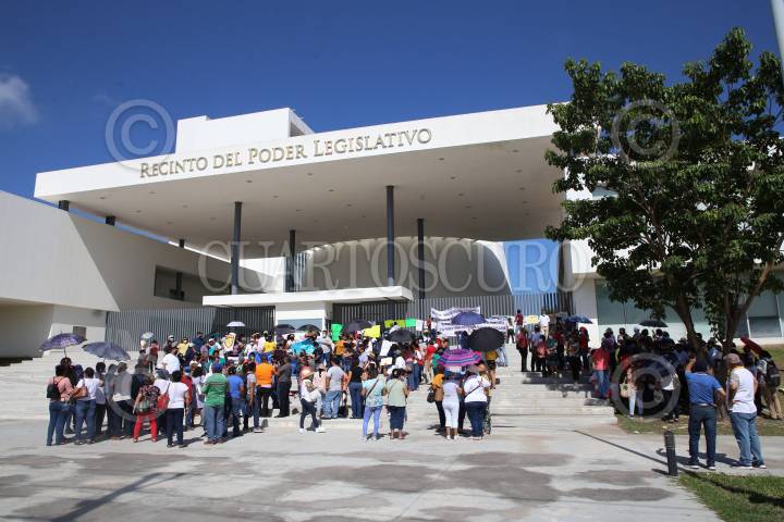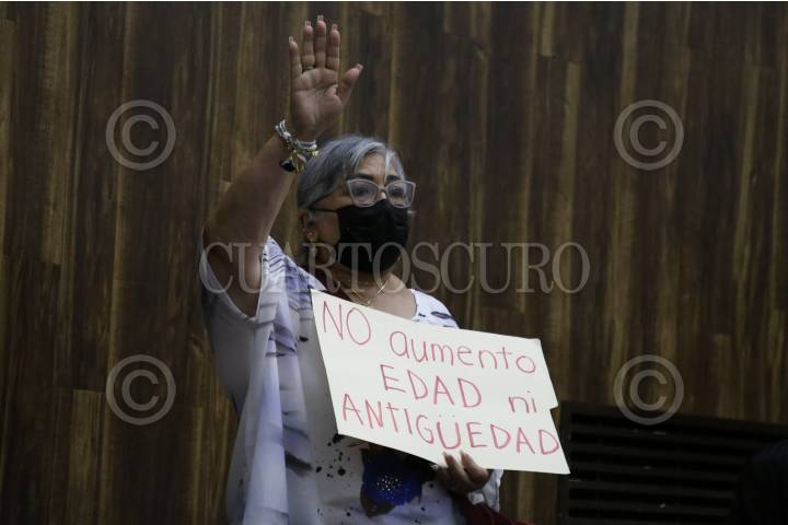 Pensionados y jubilados se manifestaron en el Congreso del Estado de Yucatán quien aprobó a la Ley del ISSTEY, la cual eleva las cuotas que tienen que pagar.