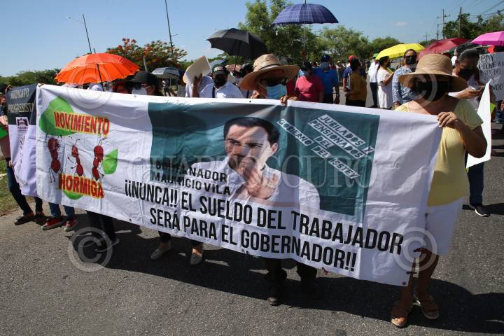 Trabajadores en activo y jubilados del Gobierno del Estado de Yucatán frente a Palacio de Gobierno para exigir castigo a los responsables del desfalco de 2 mil millones de pesos del Instituto de Seguridad Social de los Trabajadores del Estado (Isstey)