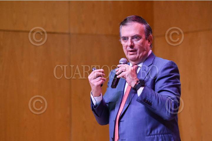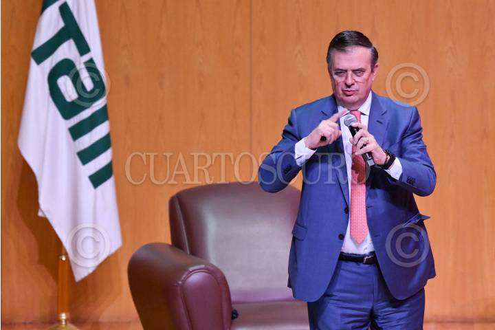CIUDAD DE MÉXICO, 10ENERO2025.- Marcelo Ebrard, secretario de Economía, durante su participación en el "Seminario de perspectivas económicas 2025" realizado en las instalaciones del Instituto Tecnológico Autónomo de México (ITAM) en la alcaldía Álvaro Obregón. FOTO: MARIO JASSO /CUARTOSCURO.COM