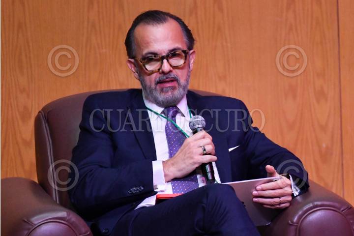 CIUDAD DE MÉXICO, 10ENERO2025.- Jorge Suárez Vélez, director general de Americana Partners International, durante su participación en el "Seminario de perspectivas económicas 2025" realizado en las instalaciones del Instituto Tecnológico Autónomo de México (ITAM) en la alcaldía Álvaro Obregón. FOTO: MARIO JASSO /CUARTOSCURO.COM