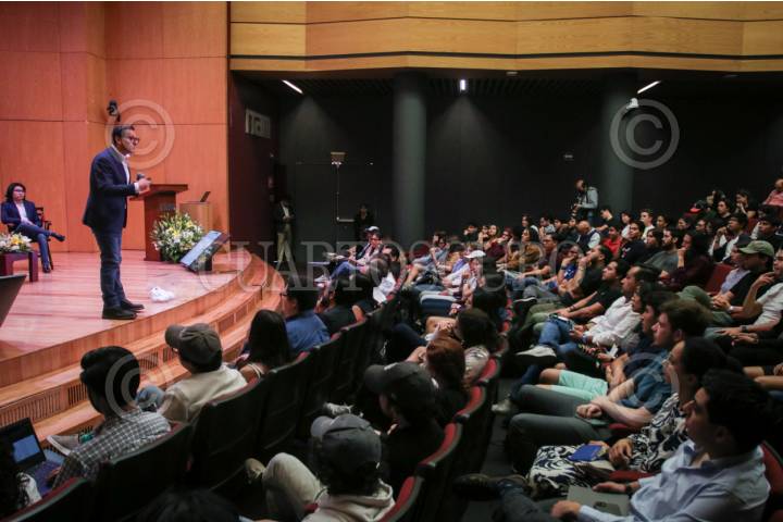 CIUDAD DE MÉXICO, 12MARZO2024.- Mastros y estudiantes recibieron en las instalaciones del ITAM a Salomón Chertorivski, candidato a la jefatura de gobierno de la Ciudad por Movimiento ciudadano. Durante la conferencia habló sobre sus doce propuestas, una de la más controversial es reubicar el Aeropuerto Internacional de la Ciudad de México (AICM). FOTO: ANDREA MURCIA /CUARTOSCURO.COM