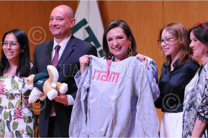 CIUDAD DE MÉXICO 02ABRIL2024.-Como parte de sus actividades de campaña, Xóchitl Gálvez, candidata presidencial de la coalición Fuerza y Corazón por México, se reunió con estudiantes del ITAM. FOTO: DANIEL AUGUSTO /CUARTOSCURO.COM