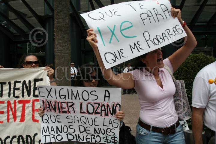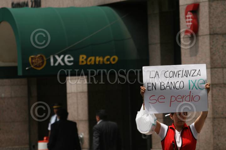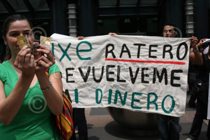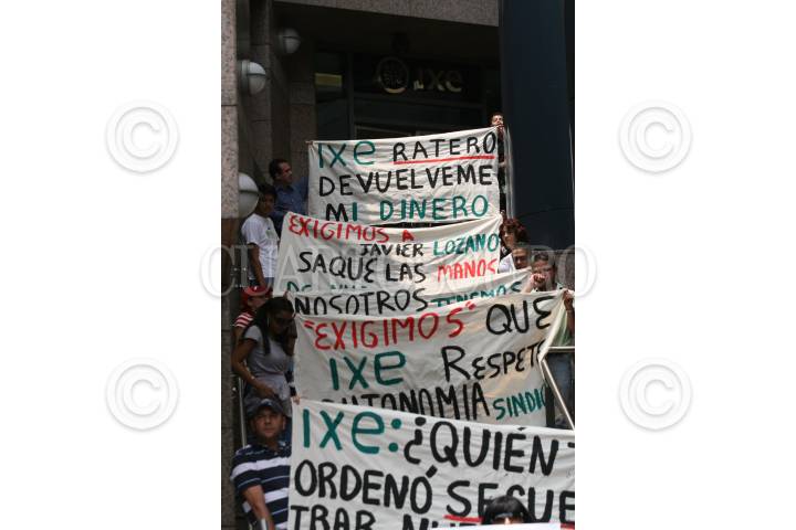 MÉXICO D.F., 04SEPTIEMBRE2009.- Integrantes de la Asociación Sindical de Sobrecargos de Aviación de México, protestaron a las afueras de la instalaciones de Ixe Banco, para exigir la liberarción de recursos propiedad del sindicato. FOTO: GUILLERMO PEREA /CUARTOSCURO.COM