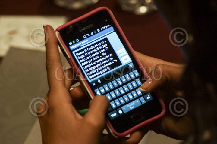 MÉXICO, D.F., 07NOVIEMBRE2012.- Una joven pone al tanto a sus familiares de los detalles en el evento en que Felipe Calderón Hinojosa, presidente de México, clausuró la primera sesión plenaria del consejo nacional del Grupo Financiero Banorte-Ixe. FOTO: ADOLFO VLADIMIR /CUARTOSCURO.COM
