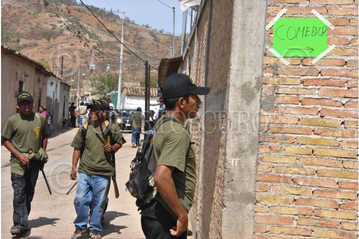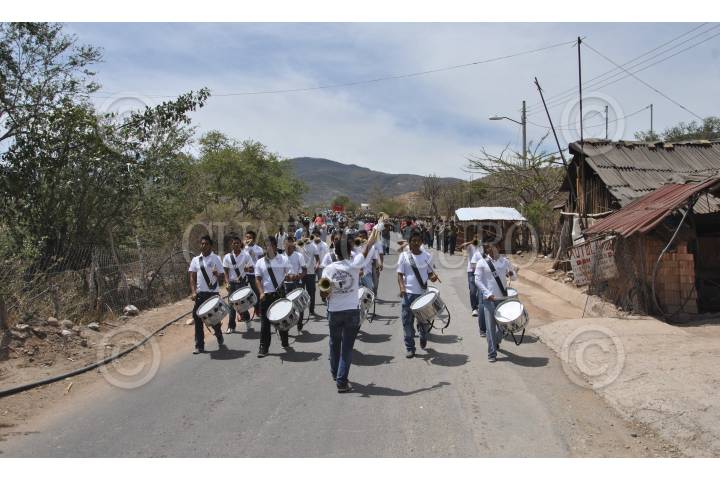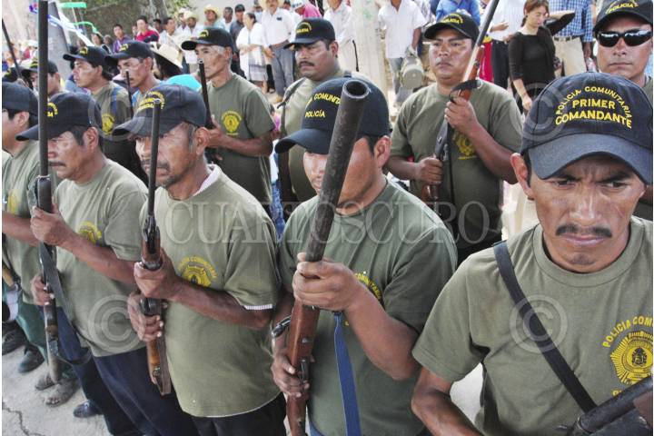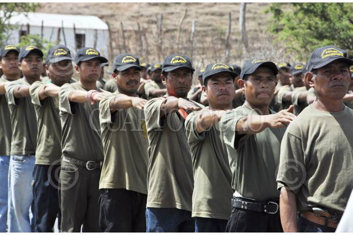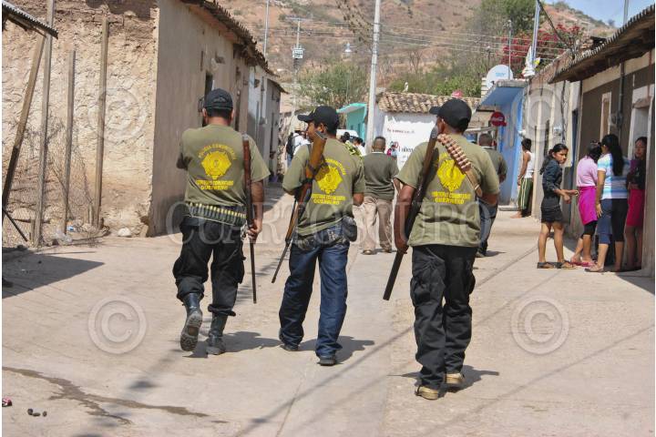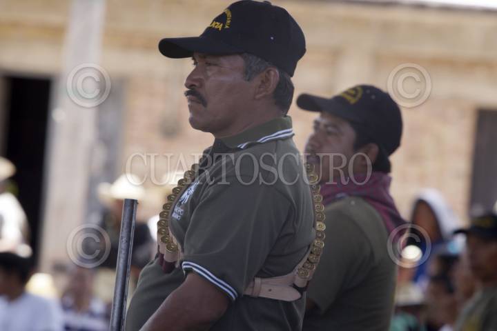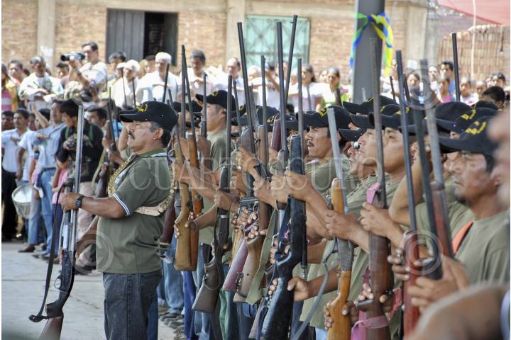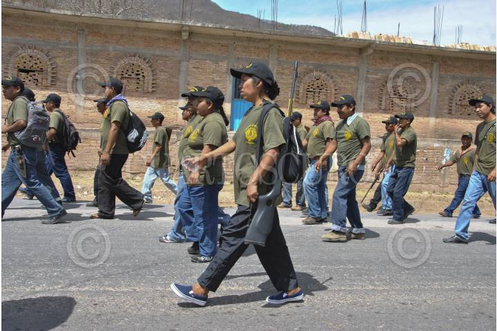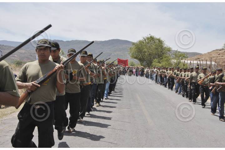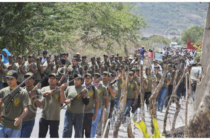 TIXTLA, GUERRERO, 13ABRIL2013.- Policías comunitarios de Coordinadora Regional de Autoridades Comunitarias de Troncones, Zacazonapa, Acatempa, Tecocintla, comunidades pertenecientes a Tixtla tomaron protesta y pertenecerán a la casa de justicia del Paraíso de San Luis Acatlan, previo a la toma de protesta los policías comunitarios desfilaron de la entrada de Acatempa a la cancha de uso múltiples, donde se llevo a cabo un ceremonia cívica. Desfile que encabezo la banda de guerra de estudiantes de la Normal Rural Raúl Isidro Burgos de Ayotzinapa, cabe hacer mención que también asistieron profesores de la Coordinadora Estatal de Educación Guerrero (CETEG) en el uso de la palabra líderes de la policía comunitario que la razón de conformar la policía es el hartazgo del Pueblo de México y el hartazgo de los guerrerenses. FOTO: ISAAC HERNANDEZ /CUARTOSCURO.COM