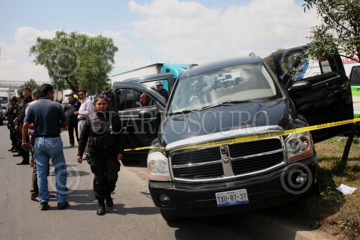 CUAUTITLAN IZCALLI, EDOMEX, 30MAYO2013.- Dos hombres de aproximadamente 75 y 40 años fueron asesinados con armas largas cuando viajaban en una camioneta Durango placas TXU-8737 del Estado de Puebla. El conductor de la unidad se encuentra desaparecido. Policía Federal, Estatal y Ejercito, acudieron al km 42 de la Autopista México-Querétaro para resguardar el área e iniciar las primeras investigaciones de ley. FOTO: LUIS CARBAYO /CUARTOSCURO.COM