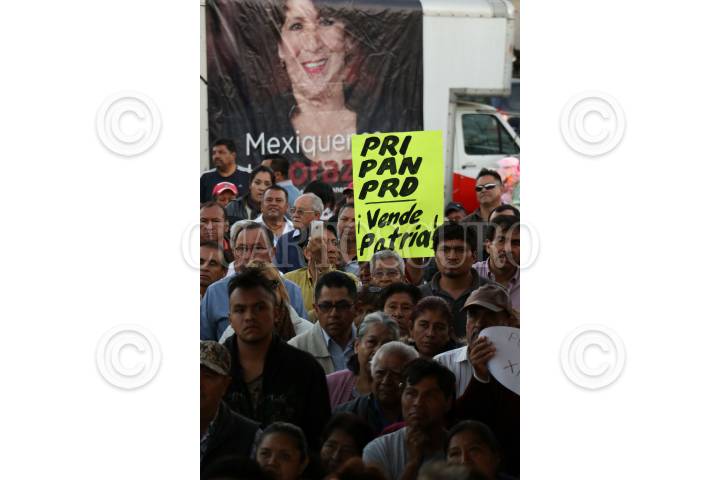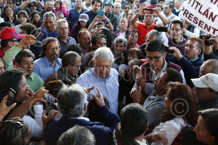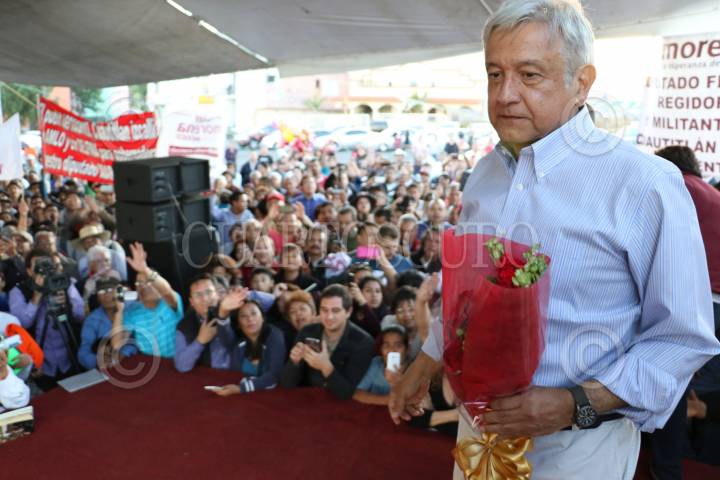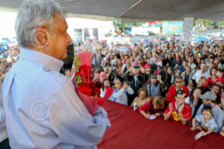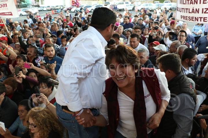 IZCALLI, ESTADO DE MÉXICO, 30ABRIL2017.- Andrés Manuel López Obrador acompañado de Delfina Gómez Álvarez, candidata de MORENA a la gubernatura del estado durante su gira de campaña electoral en el municipio de Izccalli. FOTO: SAÚL LÓPEZ /CUARTOSCURO.COM