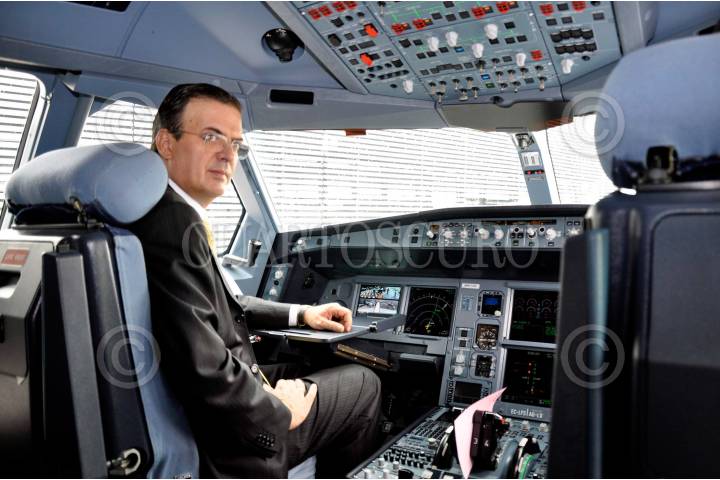 MÉXICO, D.F., 06SEPTIEMBRE2010.- Marcelo Ebrard Casaubon, Jefe de Gobierno capitalino, encabezó el bautizo y el banderazo de despegue al Airbus 340-600 de la aerolínea española Iberia, que a partir de esta fecha lleva el nombre “Ciudad de México”. FOTO: CUARTOSCURO.COM