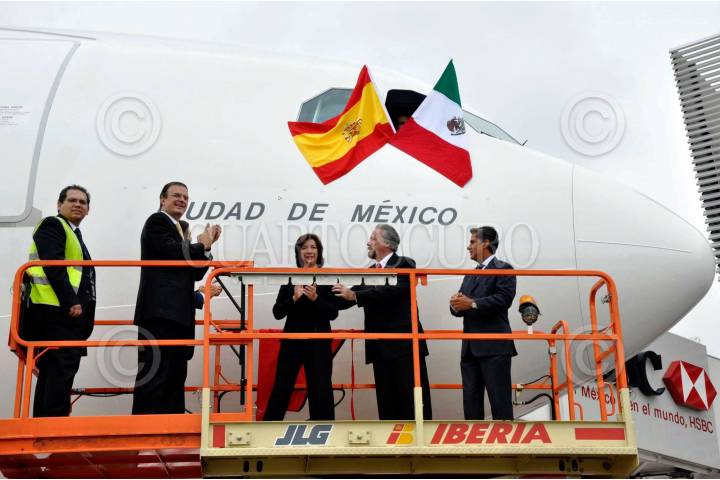 MÉXICO, D.F., 06SEPTIEMBRE2010.- La Aerolínea española Iberia, inauguró el día de hoy lunes 6 de septiembre de 2010, el nuevo avión Airbus A340-600 y una nueva ruta España-México-España, la cual fue inaugurada por el Jefe de Gobierno del Distrito Federal, Marcelo Ebrard Casaubón. FOTO: ESPECIAL/CUARTOSCURO.COM