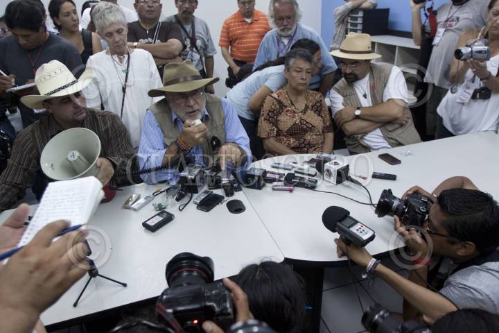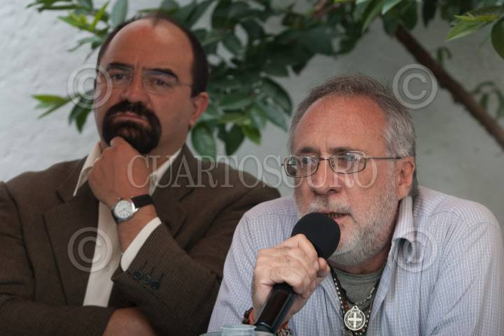 MÉXICO, D.F., 29SEPTIEMBRE2011.- Emilio Álvarez Icaza, Defensor de los Derechos Humanos, acompañado de Javier Sicilia, escritor y poeta, integrantes de del Movimiento por la Paz y la Justicia, acusaron al gobierno federal de querer debilitar su movimiento y cambiar el formato de la próxima reunión que sostendrán el próximo 7 de Octubre en el Castillos de Chapultepec. FOTO: GUILLERMO PEREA/CUARTOSCURO.COM