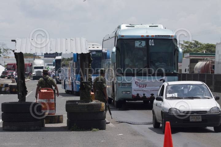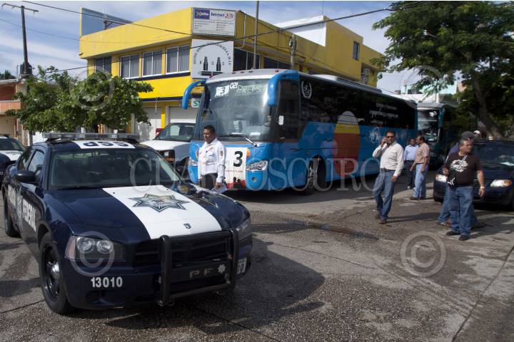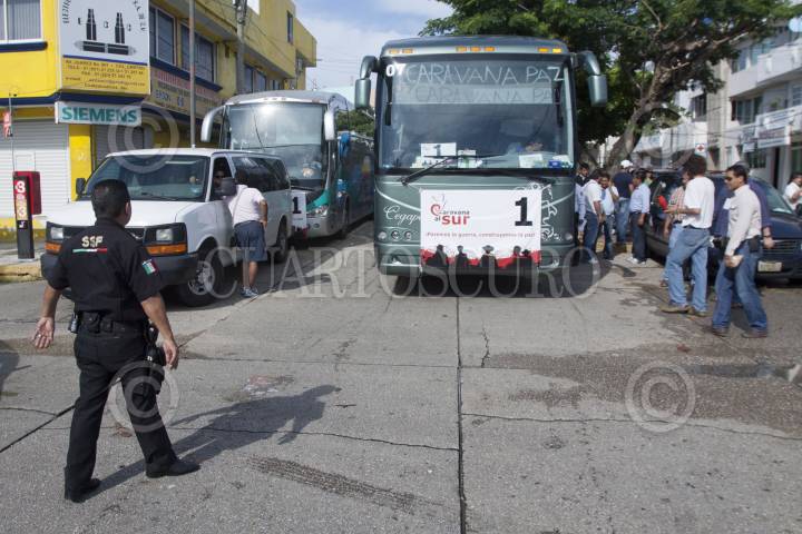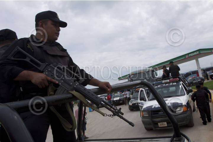 COATZACOALCOS, VERACRUZ, 18SEPTIEMBRE2011.- Elementos de Seguridad Pública federal resguardan y escoltan a los autobuses de la Caravana al Sur del Movimiento por la Paz con Justicia y Dignidad a su salida de Coatzacoalcos con rumbo a Xalapa. FOTO: RODOLFO ANGULO/CUARTOSCURO.COM
