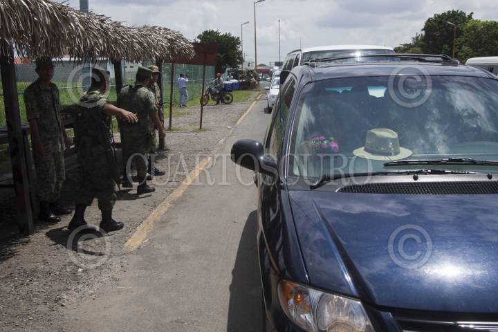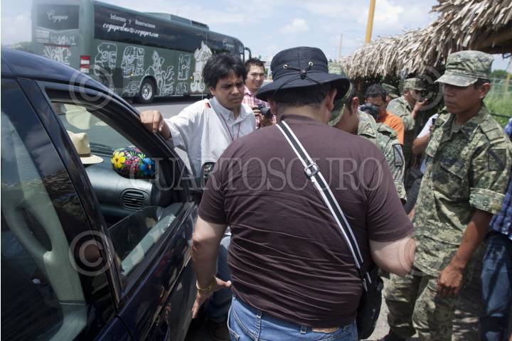 COSAMALOAPAN, VERACRUZ, 18SEPTIEMBRE2011.- Elementos del Ejercito Mexicano checan la camioneta en donde viaja el poeta Javier Sicilia en la autopista rumbo a Jalapa en donde esta tarde se realizará una marcha y mitin. FOTO: RODOLFO ANGULO/CUARTOSCURO.COM
