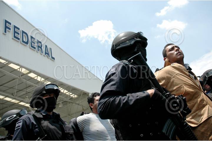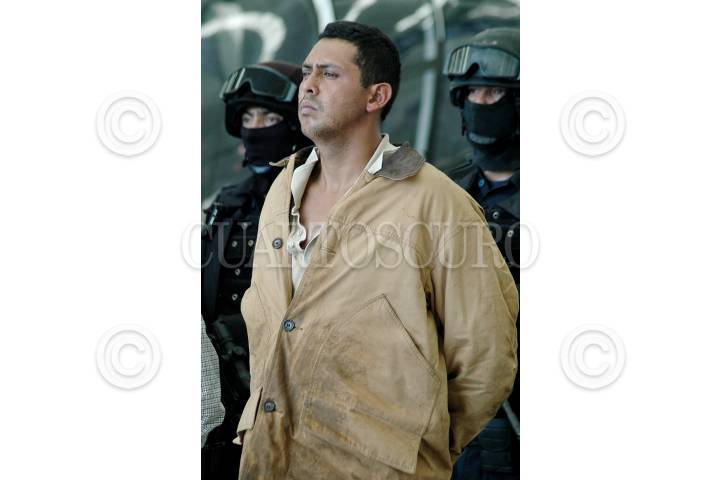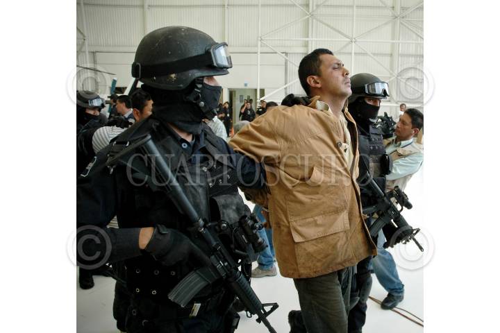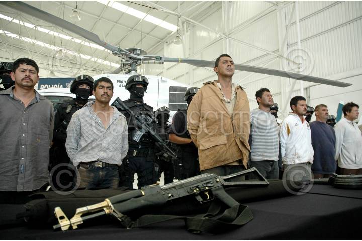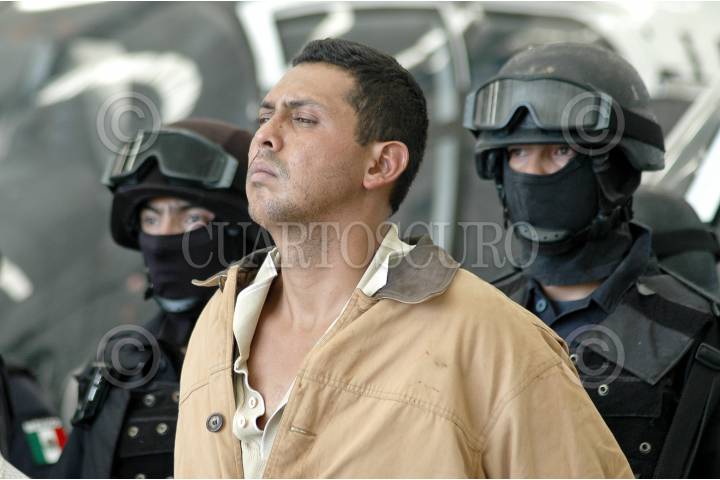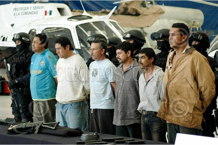 MÉXICO D.F., 25JULIO2009.- Jaime Cervantes Álvarez junto con 10 personas fueron presentados esta tarde en el Centro de Alto Mando de la Policía Federal después de ser detenidas en el municipio de Acuitzio, Michoacán por ser presuntos integrantes de "La Familia Michoacana" a quienes se les aseguro un laboratorio para la producción de droga sintética conocida como "ice" o "crystal" FOTO: RODOLFO ANGULO/CUARTOSCURO.COM