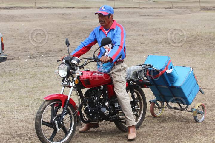 VILLA VICTORIA, ESTADO DE MÉXICO, 21JUNIO2011.- Un trabajador de la empresa Bon-Ice adapto su motocicleta para hacer sus trayectos más cortos y rapidos. FOTO: SAÚL LÓPEZ/CUARTOSCURO.COM