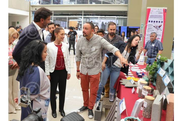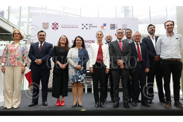 Ofelia Angulo Guerrero, Arturo Reyes Sandoval, Sara Williams, Margarita Saldaña, Claudia Sheinbaum, José Antonio de los Reyes Heredia, y Andrés Lajous, durante la presentación del "Ideathon para una transición energética".