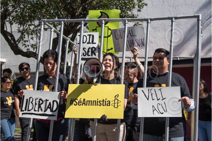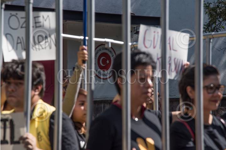 CIUDAD DE MÉXICO, 30JULIO2017.- La organización Amnistía Internacional México, se sumó a los esfuerzos para pedir al gobierno de Turquía liberar a Idil Eser, directora de Amnistía Turquía; Taner Kilic, presidente de la esta organización de ese mismo país, así como a 9 persona defensoras que fueron detenidas el pasado 18 de julio. La protesta se realizó al exterior de las instalaciones de la Embajada de Turquía en México. FOTO: MARIO JASSO /CUARTOSCURO.COM