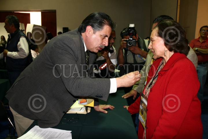 MÉXICO, D.F., 28FEBRERO2009.- Jesús Ortega, dirigente nacional perredista, conversa con Ifigenia Martínez, fundadora del partido, en los trabajos del 3er Pleno Ordinario del VII Consejo Nacional del Partido de la Revolución Democrática, en Expo Reforma. FOTO: MOISÉS PABLO/CUARTOSCURO.COM