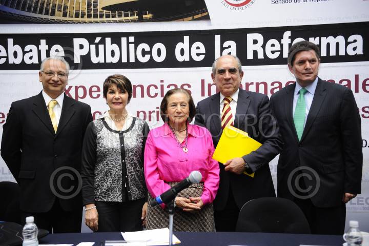 MÉXICO, D.F., 14OCTUBRE2013.- El Dr. Víctor Rodríguez Padilla, la senadora Angélica de la Peña Gómez, la Dr. Ifigenia Martínez, Pablo Gómez Alvarez Canabal y Dr. Javier Jiménez Gutiérrez participaron en el Foro “El debate púbico de la reforma energética” con el tema Experiencias internacionales: empresas públicas, privadas y modalidades de contratos. FOTO: CUARTOSCURO.COM