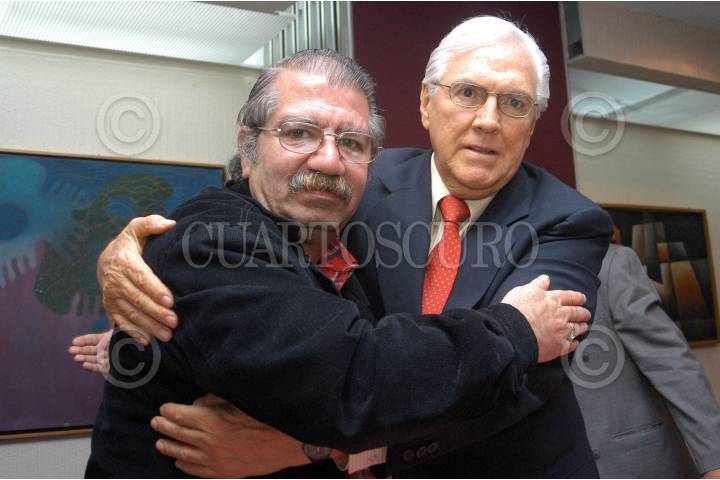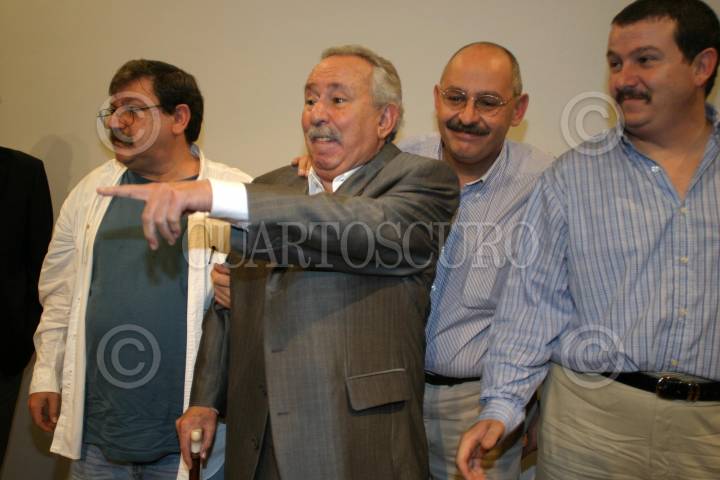MEXICO, D. F. 22AGOSTO2004.- El maestro Paco Ignacio Taibo, Paco Ignacio Taibo II, Benito Taibo y Carlos Taibo al termino de homenaje del que fue objeto en el Palacio de Bellas Artes. FOTO: Nelly Salas/CUARTOSCURO.COM
