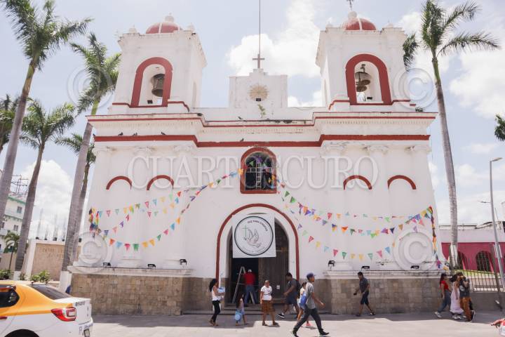©TAPACHULA, CHIAPAS, 20AGOSTO2024.- En la Iglesia de San Agustín colocaron una lona con la leyenda “PAZ para Chiapas”, esto ante la ola de inseguridad que se ha vivido en Tapachula. La policía estatal ha incrementado los rondines en las principales calles para brindarle seguridad a la comunidad, quienes a pesar de todo salen hacer sus tareas cotidianas. FOTO: DAMIÁN SÁNCHEZ/CUARTOSCURO.COM