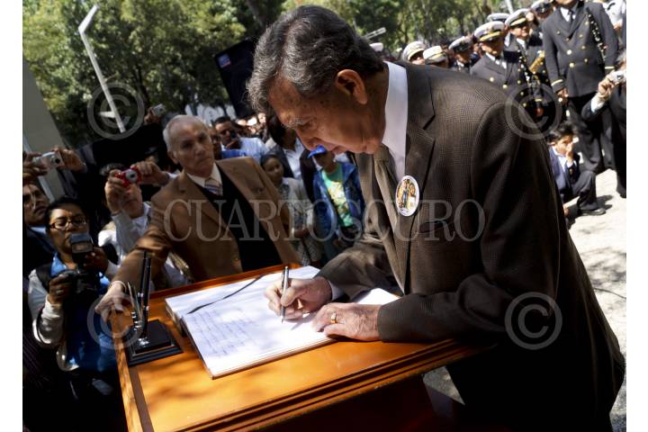 CIUDAD DE MÉXICO, 21OCTUBRE2017.- Cuautémoc Cárdenas, durante la presentación del libro de Cárdenas a Cárdenas, en la Feria Internacional del Libro Zócalo 2017. FOTO: TERCERO DÍAZ /CUARTOSCURO.COM
