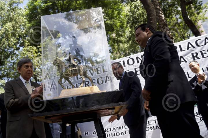 MÉXICO, D.F., 29JULIO2012.- Esta tarde en la Glorieta de la Palma, fue develada la estatua del insurgente Ignacio López Rayón, la cual fue restaurada, al evento asistó el ingeniero Cuahutemoc Cárdenas. FOTO: PEDRO ANZA /CUARTOSCURO.COM