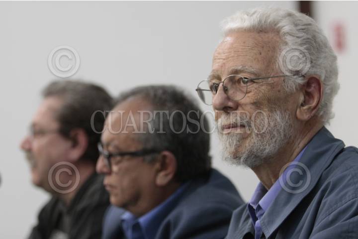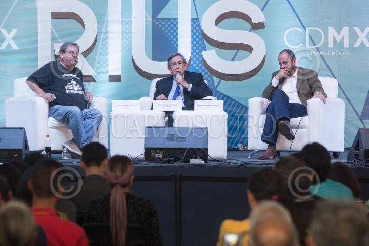 CIUDAD DE MÉXICO, 21OCTUBRE2017.- Paco Ignacio Taibo II, Cuautémoc Cárdenas, y Eduardo Vazquez, secretario de cultura de la Ciudad de México, durante la presentación del libro de Cárdenas a Cárdenas, en la Feria Internacional del Libro Zócalo 2017. FOTO: TERCERO DÍAZ /CUARTOSCURO.COM