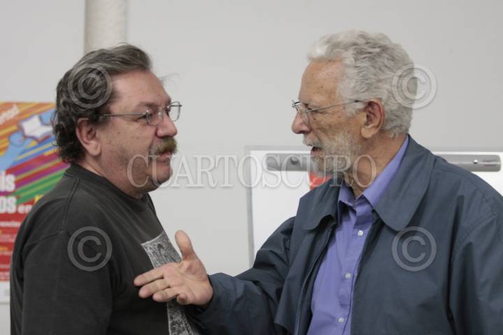 MÉXICO, D.F., 01JULIO2013.- Paco Ignacio Taibo II y Enrique Dussel, rector de la Universidad Autónoma de la Ciudad de México (UACM), anunciaron el "tianguis de libros de la UACM" que tendrá lugar en el plantel Del Valle el día de mañana. FOTO: IVÁN STEPHENS /CUARTOSCURO.COM