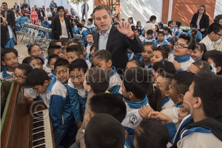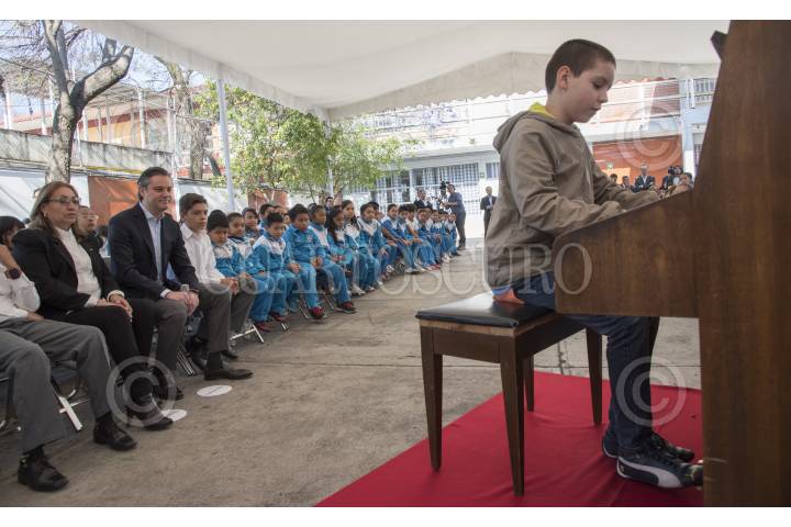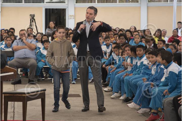 CIUDAD DE MÉXICO, 27MARZO2017.- Aurelio Nuño Mayer, Secretario de Educación Pública, asistió a los honores a la bandera a la escuela primaria Ignacio Zaragoza, donde estuvo acompañado por el infante Sergio Vargas de 11 años de edad, quien tocó el piano para los estudiantes, esto con el propósito de motivarlos a que conozcan de la música y el Arte en general. FOTO: TERCERO DÍAZ /CUARTOSCURO.COM