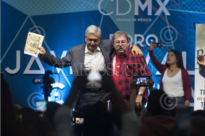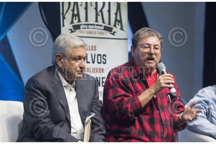 CIUDAD DE MÉXICO, 17OCTUBRE2017.- Paco Ignacio Taibo II, presentó su libro Patria, acompañado de Andrés Manuel López Obrador, en la Feria Internacional del Libro Zócalo 2017. FOTO: TERCERO DÍAZ /CUARTOSCURO.COM