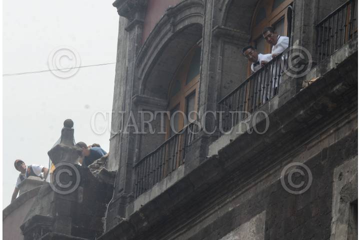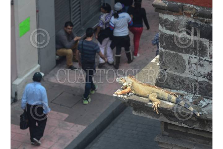 MÉXICO, D.F., 20AGOSTO2015.- Gran expectación causó una Iguana de metro y medio, la cual estaba tomando el sol en el edificio del Club Bancario, ubicada en la calle de 16 de septiembre y Bolívar, en la colonia centro. El dueño del reptil llamado Hulk, de seis años, es el sacerdote de la iglesia Nuestra Señora de la Caridad que se ubica a un lado del club. FOTO: ARMANDO MONROY /CUARTOSCURO.COM