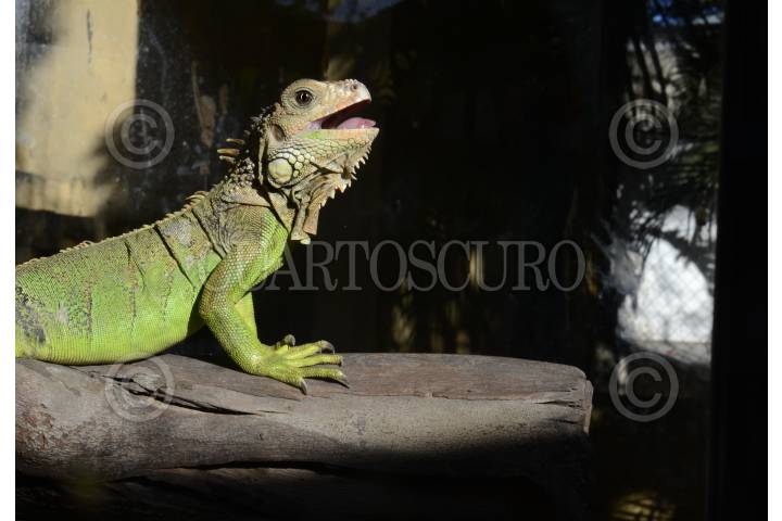 CHILPANCINGO, GUERRERO, 07DICIEMBRE2015.-Una Iguana se observa en cautiverio en una jaula de cristal del zoológico Xochilpan. FOTO: JOSÉ I. HERNÁNDEZ / CUARTOSCURO.COM