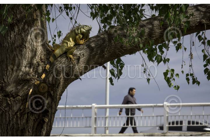 ACAPULCO, GUERRERO, 14ENERO2018.- Las iguanas y garrovos se asolean para digerir lo que comen y aumentar su temperatura para poder seguir creciendo. Las mañanas son los periodos que estos reptiles prefieren andar por todos lados en el Parque Papagayo. FOTO: BERNANDINO HERNÁNDEZ /CUARTOSCURO.COM
