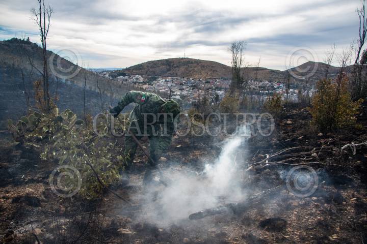 Un incendio forestal se presentó en las faldas del histórico Cerro de la Bufa. El siniestro, presuntamente provocado por intervención humana, duró activo durante dos horas y consumió por lo menos siete hectáreas de pastizales, nopales jóvenes y pequeños arboles de eucaliptos.