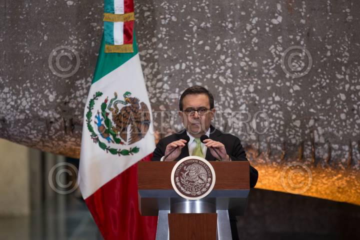 CIUDAD DE MÉXICO, 13NOVIEMBRE2018.- El presidente de la República Mexicana, Enrique Peña Nieto encabezó la presentación de los resultados del sector de economía y generación de empleos en su sexenio, inaugurando también la nueva Torre Ejecutiva de la Secretaría de Economía, en la imagen el secretario de economía Ildefonso Guajardo Villarreal quien dio las conclusiones del informe. FOTO: ILSE HUESCA /CUARTOSCURO.COM