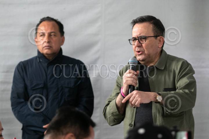 CIUDAD DE MÉXICO, 29FEBRERO2024.- Max Cortázar e Ildefonso Guajardo, colaboradores de Xóchitl Gálvez, candidata la Presidencia de México por la Coalición Fuerza y Corazón por México, durante la última "Mañanera de la Verdad". El ex secretario de Economía afirmo que fue la administración de Enrique Peña Nieto quienes cerraron las negocio es del T-MEC, esto ante la afirmación del Presidente Andrés Manuel López Obrador que Canadá está en este tratada gracias a su intervención. Esto durante la llamada "Conferencia de la Verdad". FOTO: MOISÉS PABLO/CUARTOSCURO.COM