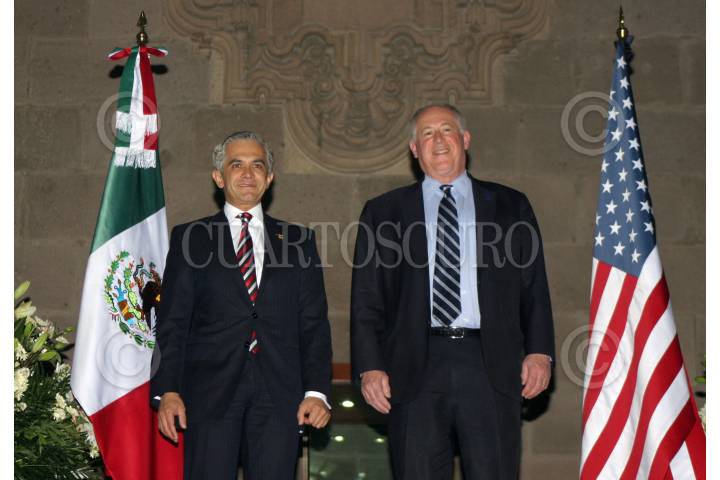 MÉXICO, D.F, 04ABRIL2013.- Miguel Ángel Mancera, jefe de gobierno del Distrito Federal, nombró en el Palacio del Ayuntamiento como huésped distinguido de la Ciudad de México al Patrick Quinn, gobernador del estado de Illinois. FOTO: CUARTOSCURO.COM