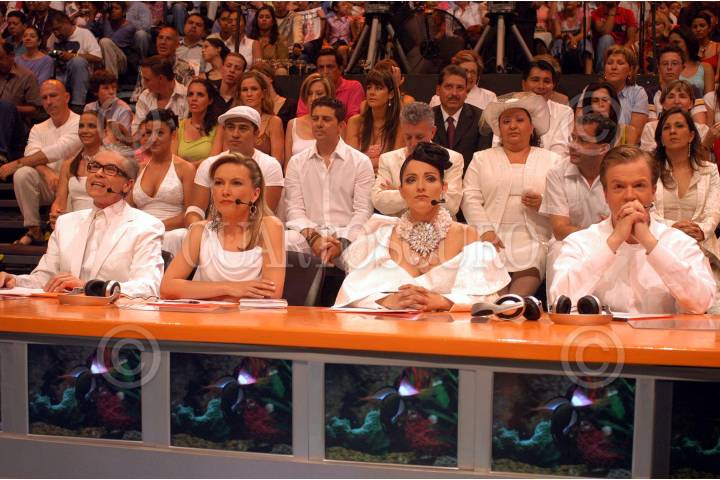 MEXICO, D.F. 24ABRIL2005.- Los críticos de La Academia cuarta generación, Oscar Sarquis, Ilse, Lolita Cortés y Arturo López Gavito, durante el noveno concierto de dicho reality show. FOTO: Sandra Perdomo/CUARTOSCURO.COM