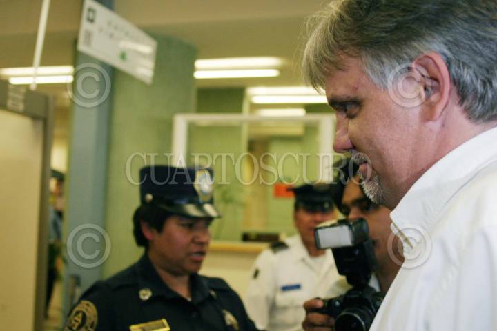 MEXICO, D.F. 18ENERO2005.- Carlos Imaz, ex delegado en Tlalpan al término de su audiencia en calidad de testigo en el caso Ahumada, realizada en el juzgado 32 en el Reclusorio Sur. Al fondo tras la rejilla René Bejarano, ex asambleísta. FOTO: Sandra Perdomo/CUARTOSCURO.COM