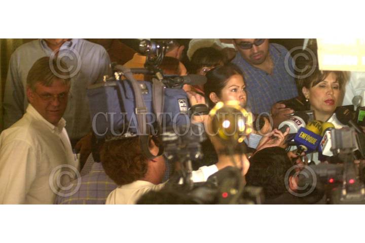 MEXDF26MAYO2004.- Mientras que Rosario Robles, expresidenta del PRD responde a los medios de comunicación, Carlos Imaz, exdelegado de Tlalpan se retira del juzgado once del reclusorio Norte después de haber declado sobre el caso Carlos Ahumada. FOTO: Eunice Adorno/CUARTOSCURO.COM